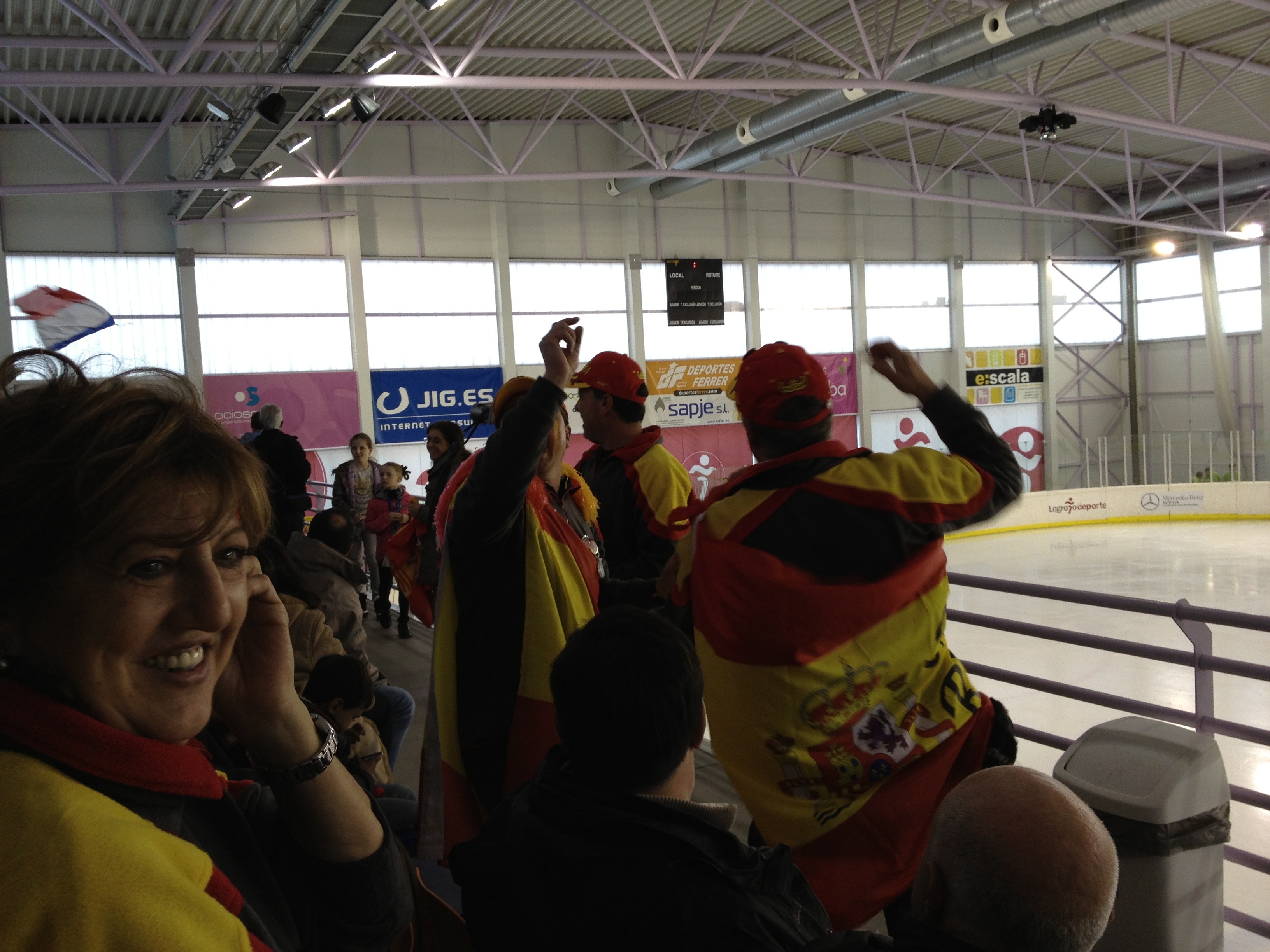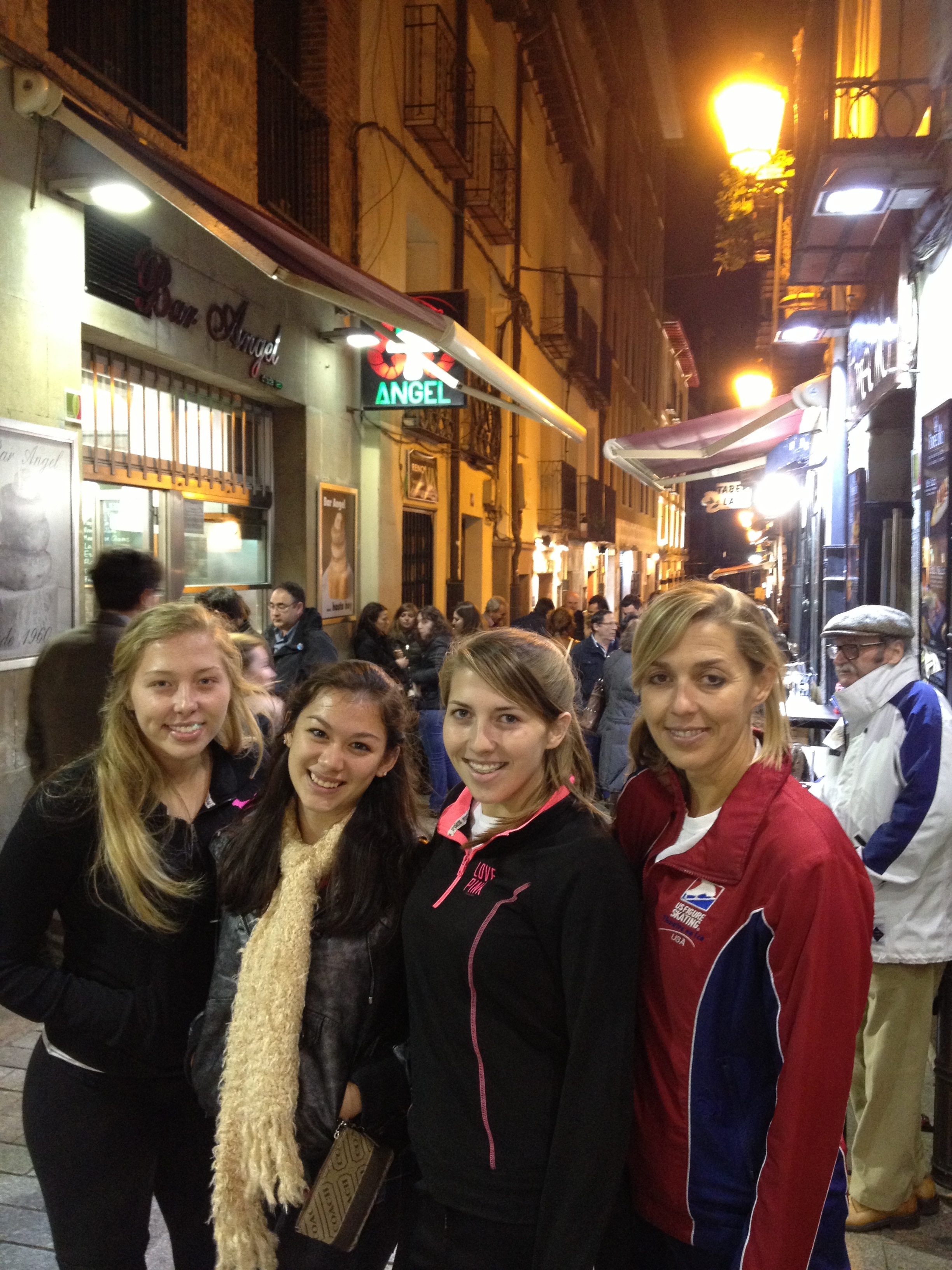 Saturday flew by. Started the day getting to the rink at 6:20a for our adult team’s practice session. Came home for siesta and then returned for the compulsory (short program) for both the adult team and novice team. Both teams skated well, but struggled to place well against tough competition. Competitors are from Spain, France, Kazakstan, Russia, Australia and the USA. Tomorrow should show off our club’s strength.